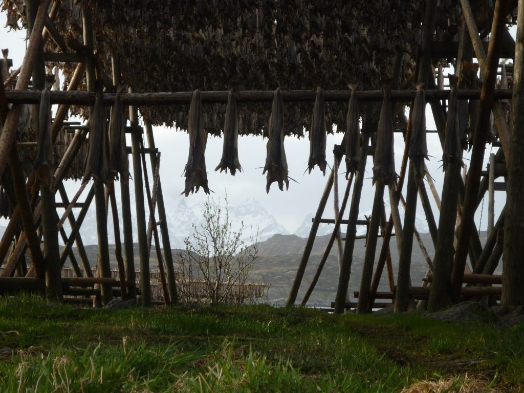 Vi lascio immaginare l’odorino che pervade l’aria quando arrivate nei pressi di uno hjell, la struttura su cui viene riposto il merluzzo per l’essicazione!