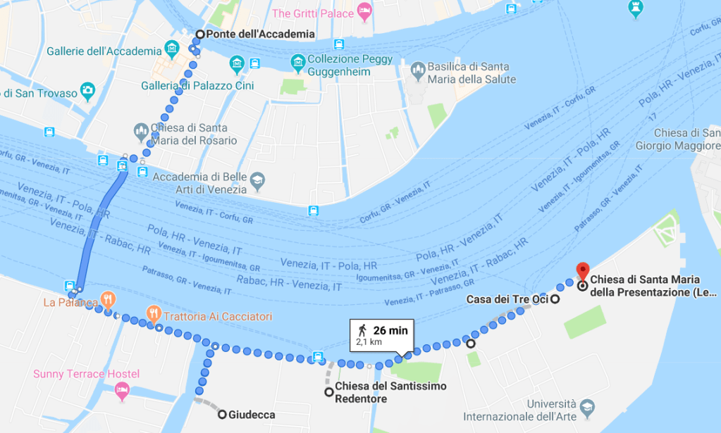 Per raggiungerla è necessario prendere il vaporetto. Noi lo abbiamo preso dalla fermata Zattere fino a quella di Palanca. Il biglietto per questa tratta ha un costo di €10 andata e ritorno.