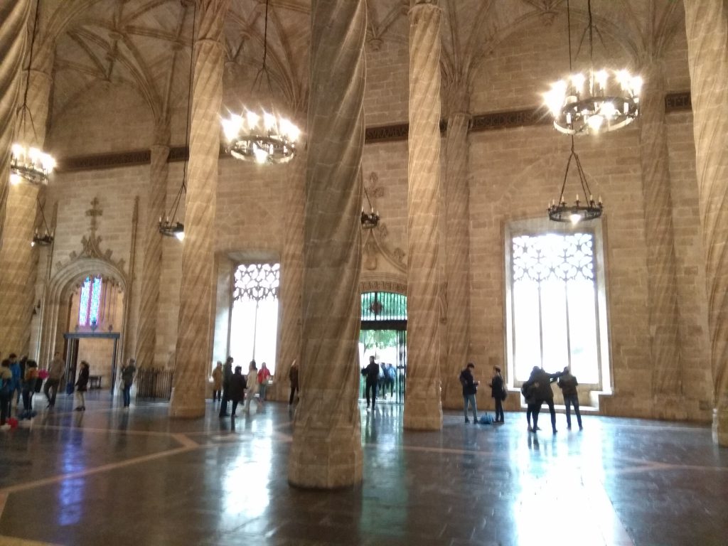 - Salon de Contrataciòn: si tratta della sala principale della Lonja, con 24 colonne elicoidali che salgono per 17 metri. In questa stanza si svolgevano gli scambi della lana, della seta e le attività bancarie;