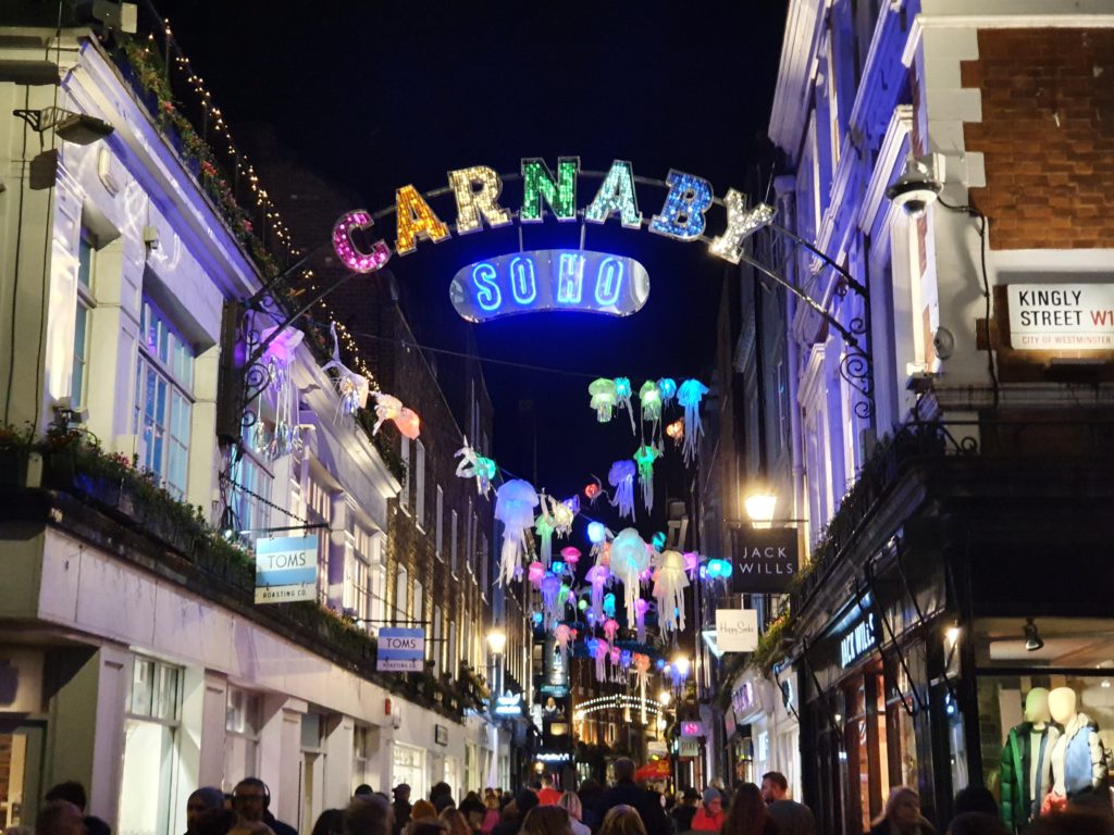 Carnaby Street è una via situata nel quartiere di Soho, uno dei più caratteristici di Londra. Qui vengono installate delle luminarie alternative molto originali e diverse da quelle che siamo abituati a vedere nelle nostre città. Assolutamente da non perdere!